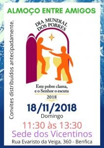 No próximo domingo, 18 de novembro, a Igreja Católica em todo o mundo celebra o 2° Dia Mundial dos Pobres, atendendo a um apelo do Papa Francisco. Para marcar a data, a Sociedade de São Vicente de Paulo (SSVP) e a Paróquia Nossa Senhora da Conceição de Benfica promoverão o “Almoço entre Amigos”.