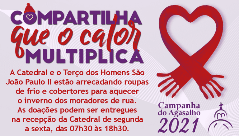 O inverno está chegando e, com ele, as baixas temperaturas, que costumam trazer ainda mais sofrimento para os mais necessitados. Por isso, o Terço dos Homens São João Paulo II, da Catedral Metropolitana, está promovendo uma Campanha do Agasalho.