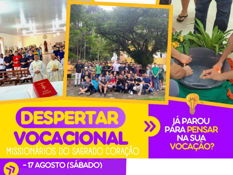 Neste sábado, dia 17 de agosto, acontece o “Despertar Vocacional” na Paróquia São Pio X, no bairro Ipiranga, a partir das 16h. O evento é promovido anualmente pelos Missionários do Sagrado Coração, para tratar da temática especial deste mês, colaborar no discernimento dos jovens e apresentar o carisma da congregação, que é responsável pela paróquia.