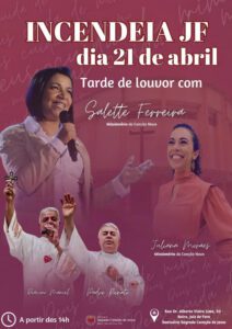 O Santuário Sagrado Coração de Jesus está promovendo o “Incendeia JF”, uma tarde de louvor com Salette Ferreira e Juliana Moraes, Missionárias da Canção Nova. O evento acontecerá neste domingo, dia 21 de abril, a partir das 14h.