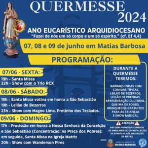 Nesta sexta-feira começa, em Matias Barbosa (MG) a tradicional Quermesse em honra à Nossa Senhora da Conceição e São Sebastião. Em vista do Ano Eucarístico Arquidiocesano, o tema será “Fazei de nós um só corpo e um só espírito”.