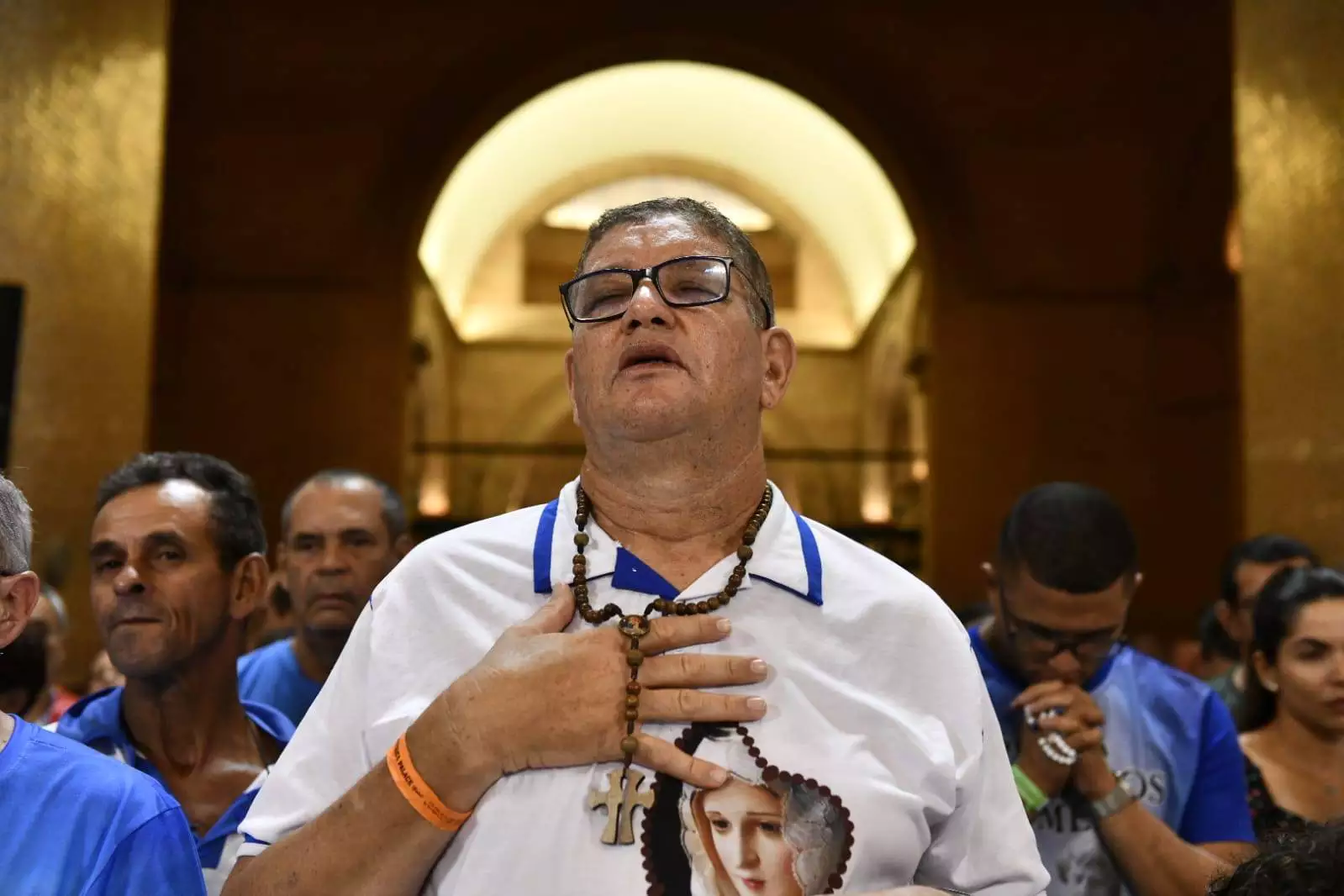 A Eucaristia foi presidida por Dom Gil Antônio Moreira, administrador apostólico da Arquidiocese de Juiz de Fora (MG) e bispo referencial do movimento junto à CNBB. A celebração contou ainda com a condução do diretor de arte e pastoral da TV Aparecida, Irmão Alan Patrick Zucheratto, C.Ss.R., e a presença do reitor do Santuário, Pe. Eduardo Catalfo, C.Ss.R., dos administradores-ecônomos Pe. Fábio Evaristo, C.Ss.R. e Adam Rapala, C.Ss.R., além de diversos missionários redentoristas e diretores espirituais dos grupos do Terço dos Homens que se fizeram presentes neste primeiro dia de romaria.