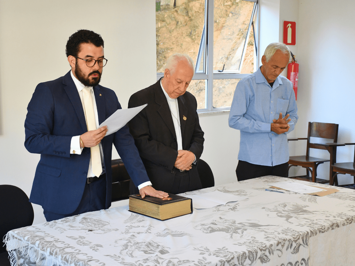 Na última sexta-feira (22), o Tribunal Eclesiástico Interdiocesano e de Apelação de Juiz de Fora ganhou um novo juiz auditor, o Sr. Eduardo Passarella Freire. A sessão foi presidida pelo Arcebispo Metropolitano, Dom Gil Antônio Moreira, e contou com a presença do Vigário Judicial e Vigário Adjunto, Padre Geraldo Luiz Alves Silva e Monsenhor Eduardo Almeida da Rocha.
