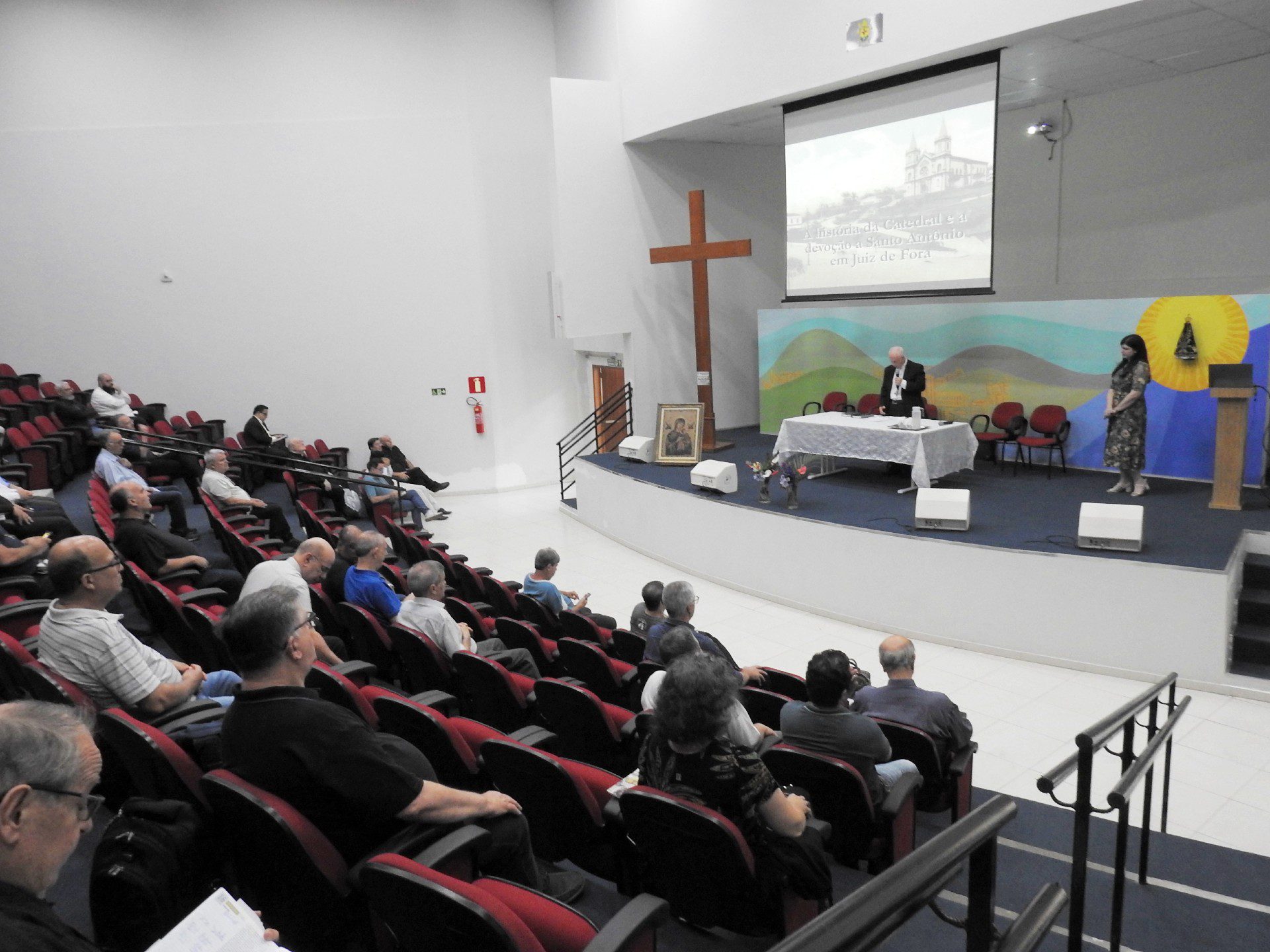 A formação da vez foi conduzida por Rita Couto, pesquisadora e jornalista. “Nessa palestra eu trouxe informações sobre a construção da Catedral de Juiz de Fora e também sobre a devoção a Santo Antônio aqui na nossa região. Uma devoção que surge ainda no século 18 e que, nós temos hoje ainda esse exemplo dessa semente que foi plantada de fé e que ainda hoje floresce aqui na nossa Arquidiocese. Não trouxe informações, não só sobre a construção da primeira capela dedicada a Santo Antônio, construída na década de 1740, como também da construção da nossa atual Catedral; toda ampliação que ela sofreu na década de 1950 com a construção da cúpula, das naves laterais, […], que trouxer a configuração que nós temos na Catedral atualmente”, contou ela.