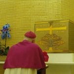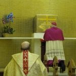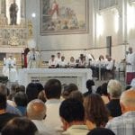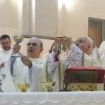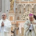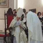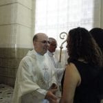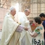 Logo após a celebração, o arcebispo e o monsenhor cumprimentaram as pessoas na saída da igreja.